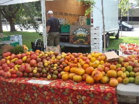 Dufferin Grove Organic Farmer's market is truly a pleasure to be a part of. The organizers and market manager strive for quality and truly organic products. Farms are visited and not much gets past this smart bunch! They organize community suppers and keep the park buzzing. It's nice to know customers by name now. Like I've told many before, the markets 're-charge' my batteries and make it easier to hit the fields the day after and do it all over again! Dufferin runs every Thursday, all year round. Visit our links section for directions on our mother site. I've included a pic of some awesome helpers we have this year!! It is impossible for Ben and I to run it alone now, so "Ben" and "Podge" are excellent additions to our crew! (yes, two 'Ben's!) This is prime harvest time and within the next few weeks, customers will begin to see the quanities on our tables change and slow A BIT! Still lots of harvest left, but get in those tomatoes while you can! Simply a crap tomato year, the crop is now on a downward spiral. Make your sauce, eat those fresh, even freeze some whole. Enjoy plentiful amounts of carrots, beets, potatoes, peppers, onions at market this week and next. Try some fall soups. I'll post some recipes shortly.