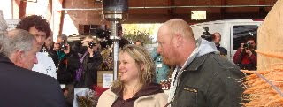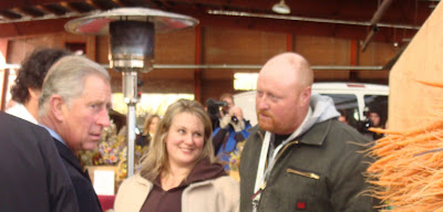Beautiful day at Evergreen's Brickworks this past Friday. The 'hush hush' event involved a handful of vendors from the Brickworks Farmers' Market (now officially over for the season) to join together to showcase our products for Prince Charles and other importants. Chef Jamie Kennedy catered the event along with greeting HRH and lead him around for the meet and greet. No one really had any idea what to expect. For all we knew he was just going to wave at all of us and take off. To our surprise he took the time to engage with almost all the vendors present. Ben and I were greeted with a firm handshake as he examined our produce shelf and asked us if we grew all of it! Proudly stating so, Ben then went on to tell him that we've been farming organically since 2001 and HRH was quick to see we were certified too! We spoke briefly about celeriac, then he asked us if we had any trouble with potato blight this year. I told him no and I remember my little moment with the Prince as he said in his rich British accent: "Well you have to just cut the tops right off" and I grinned and almost shouted "That exactly what we did!" and we laughed and he shook his head and said: "It's always something or other when growing". A very neat experience to say the least! The rest of the time we enjoyed mingling drinking wine and eating tasty treats compliments of Jamie Kennedy's crew and met and took pics with others like Jim Flaherty the Finance Minister of Canada! A huge thanks to my sister Jennie for taking all these pictures and capturing the moment for us!!