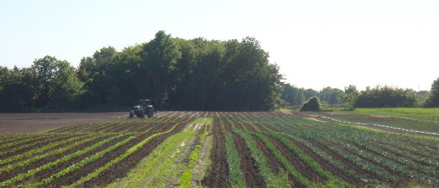 Trying to catch up with blogging! Lots of stuff happening around here! Planting, planting like mad! Harvesting huge heads of Lettuce and Asian Greens like Bok Choy and Tatsoi; Weeding, hoeing, cultivating! What we've been up to the past few weeks: planting Winter Squash, second planting of Cucumbers, Sweet Potatoes (yes, another crop!**), transplanting Celeriac, Brussel Sprouts, Tomatoes (roma, round & cherry & heirloom), Peppers ( LOTS of different peppers thsi year!!); Being weeded and thriving is a huge Broccoli and transplanted Beet patch, sweet white Onions, Kale, Kolhrabi, etc,etc...**Picking strawberries, ordering new plants (our exsisting patch is two years old, time to get new); Peas in blossom, Green Beans thriving, Sweet Corn germinated and growing awesome, potato beetles 'mating' on potato plants and hanging out on every single Eggplant I have!! (soon to die via natural remedy called 'entrust') and the list goes on and on and on!!!! Fields look beautiful! Always feel behind, but on a rainy day like today is when I have time to get organized! Ben and I still have a good feeling about this year! Time to catch up! Enjoy the harvest that is going to hit hard very, very soon!
