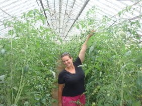 We've had some crop failures such as broccoli and the cucumbers are not so hot this year.  It started off with fighting 'damp off' this year with the seedlings followed by some disease out in the fields now....We have planted another late crop and fingers crossed may have some August cucumbers.  We drove through the 'hail' and massive rain storm last Saturday coming home through Brantford, so we were lucky as our farm did not receive this onslaught - but it is soo close! It could always be worse.  We will not have summer carrots or beets.  These crops will hit hard come September and stored for winter - yes, tons of 'golden beets' too! For August our farm will be bringing on a bevy of field tomatoes, sweet corn and all sorts of peppers! Right now is green bean city!  I have been taking any and every spare minute to 'freeze' as many green beans as I can for winter sales.  In fact, I was written about in the July 1st issue of Macleans Magazine talking about the freezing process!  Besides spelling our name wrong and getting our acreage wrong, it's a sweet article! I'll link to it shortly.   Our field tomatoes look great so far!  In fact the roma and cherry tomatoes are just starting now!  So for those (like me!) that have missed salsa, fresh tomato juice, bruschetta, etc,etc, - THIS is the year to catch up!  I've included other pics of me in my 'tomato jungle' and one of Ben and I in our tomato field!