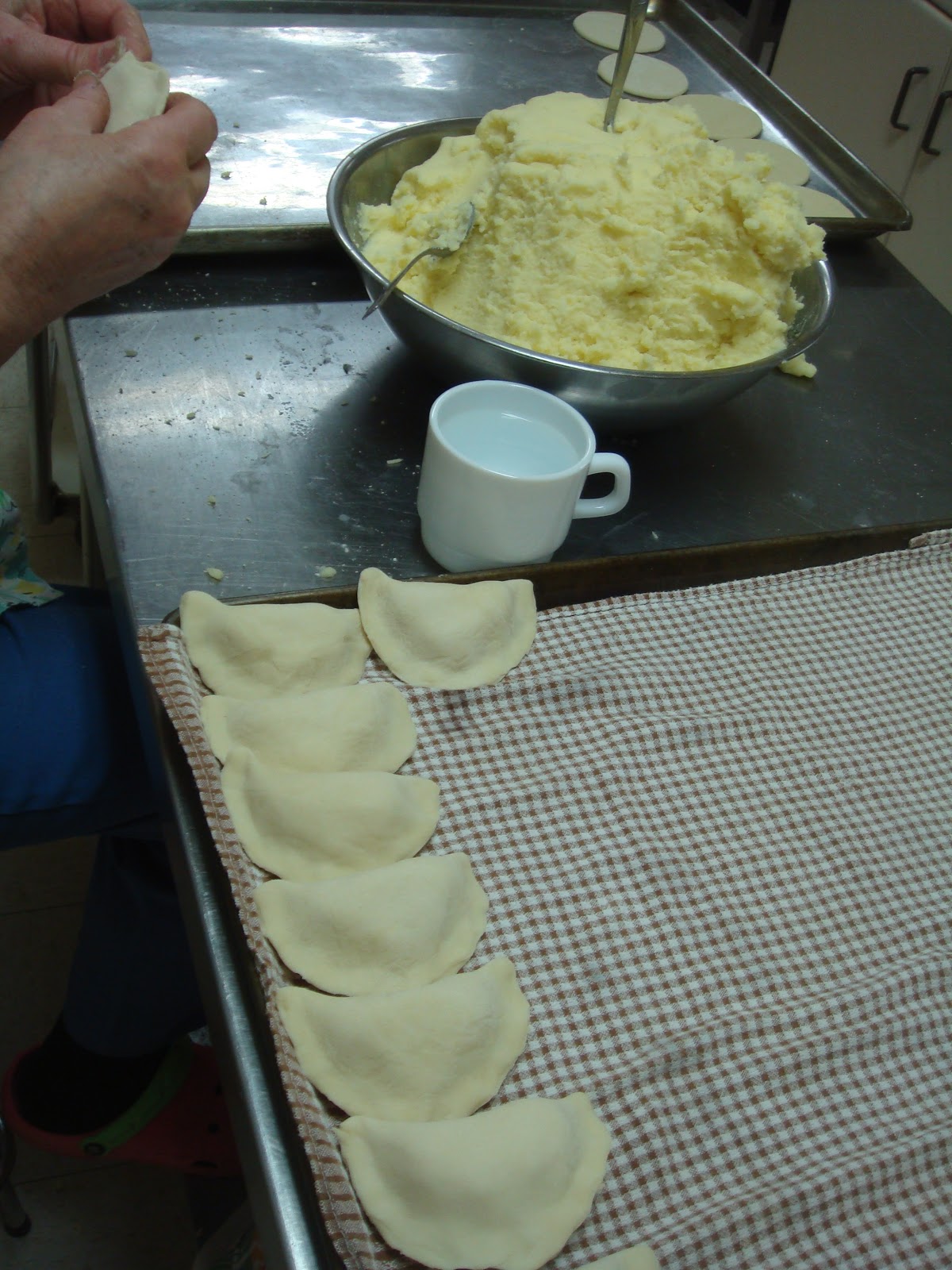Above Anne making the Potato Cheddar Perogies....