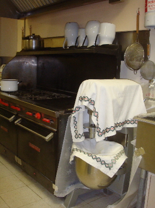 My favorite machine, Mr. Hobart nicely put away after all it's service making dough and mashing potatoes....I love the Ukrainian Cloths the women have it wear when not in use! This machine is respected - once you've made dough and mashed potatoes by hands for years, this becomes a welcome friend in the kitchen!!