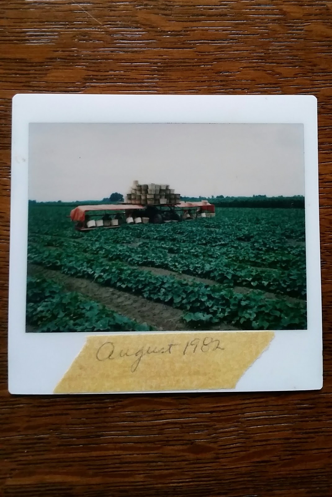 My dad grew a lot of cucumbers during my childhood. I have many, many memories about summers and cucumbers growing up. Mom and dad made us work, so I remember not always liking them. Our cucumber picker had 'wings'. And before dad upgraded to a conveyor system, he stacked bushels. He shipped to the local Bicks pickle station at the end of our road that has been gone for years now.