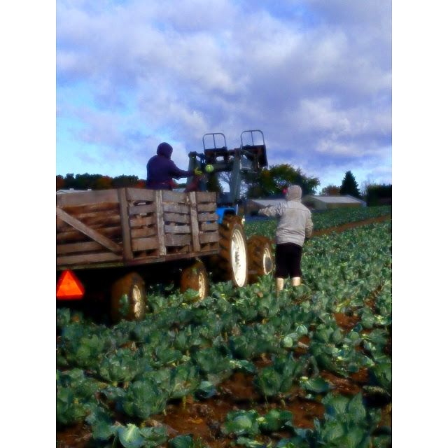 One of thee last jobs before our men get ready to leave for the season. Cutting cabbage and loading the cooler. I CANNOT believe we are at this stage already. Blows my mind.
